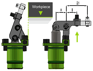 Dieser Hebelspanner erzeugt hohe Spannkräfte bei sehr kleinen Abmessungen. Zudem zeichnet er sich durch eine geringe Störkontur mit hoher Bauteil-Einlegefreiheit aus.